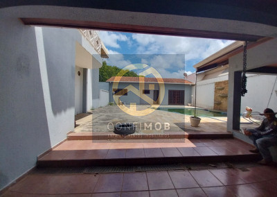 03 DORMITÓRIOS COM ARMÁRIOS EMBUTIDOS, SUÍTE, SALA DE ESTAR, SALA DE JANTAR, SALA DE TV, COZINHA PLANEJADA, LAVANDERIA, PISCINA, COMODOS FUNDOS, BANHEIRO FUNDOS, GARAGEM PARA 04 VEÍCULOS, PORTÃO ELETRÔNICO, INTERFONE.