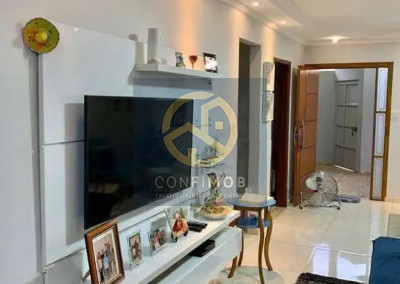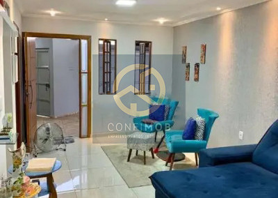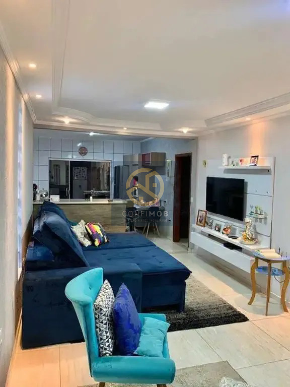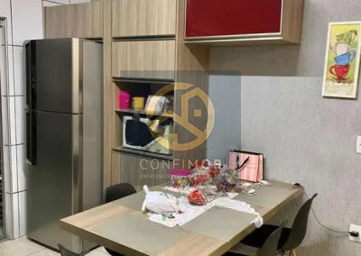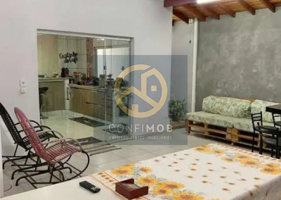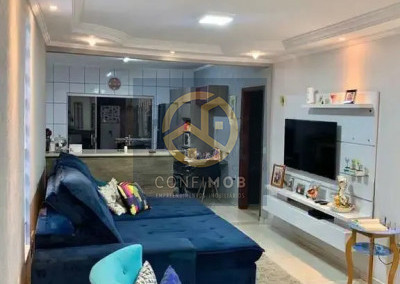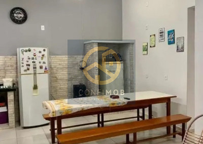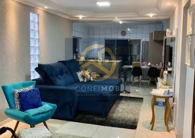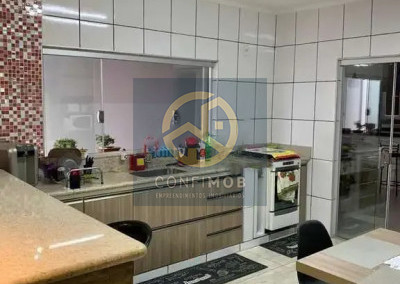 03 dormitórios, sendo 01 suíte, sala de estar e sala de Tv integradas, cozinha estilo americana com balcão amplo, 01 banheiro social, área de lazer com churrasqueira e banheiro, lavanderia, garagem coberta para 2 autos, móveis planejados na cozinha, piso porcelanato, sanca de gesso, Iluminação em Led, ótima localização, documentos ok aceita financiamento.