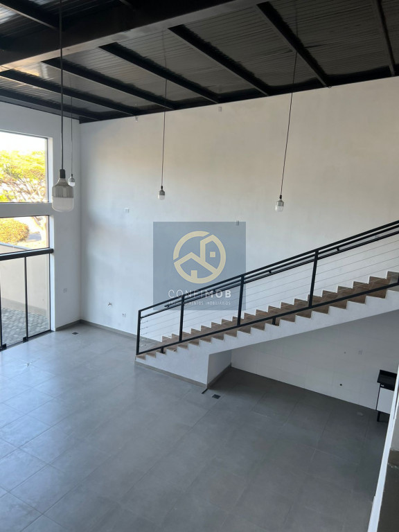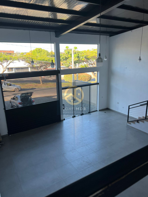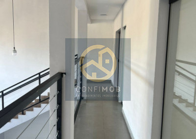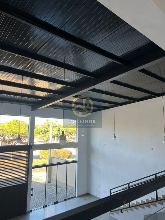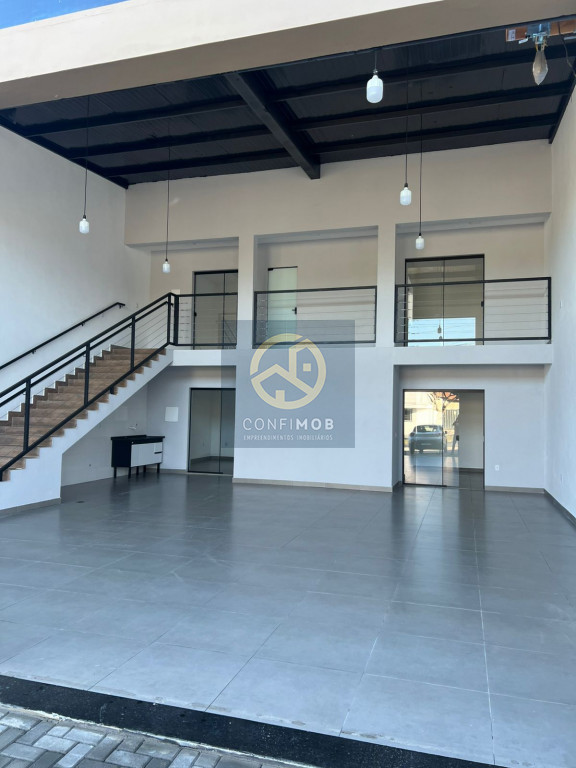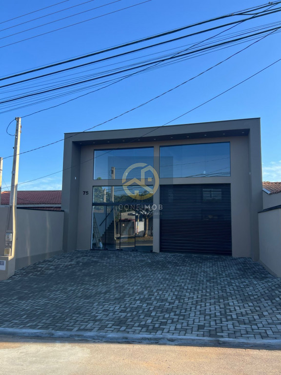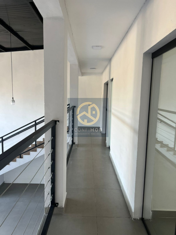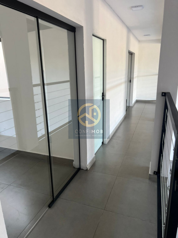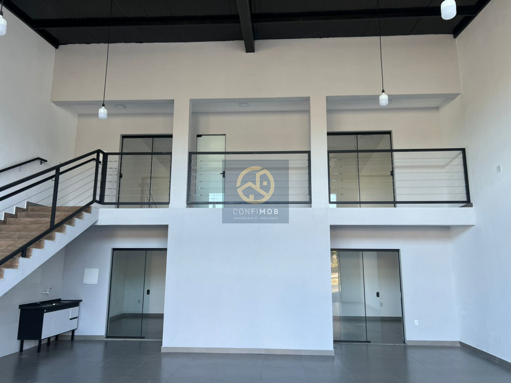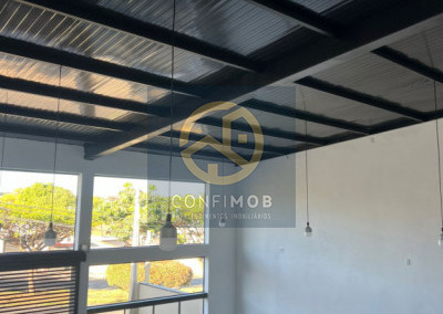 Galpão com quatro salas, dois banheiros, pé direto de 8 metros,