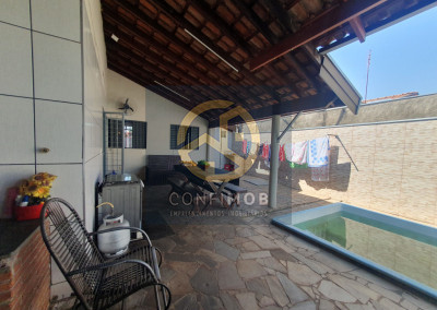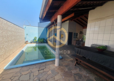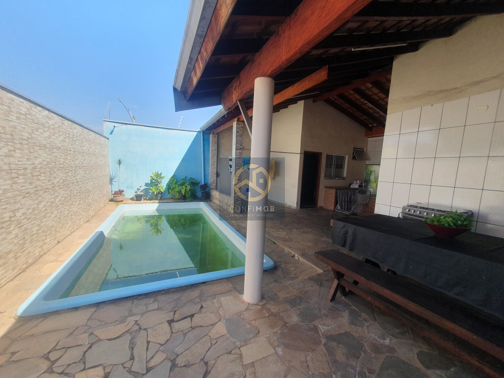02 DORMITÓRIOS, SALA, COZINHA, BANHEIRO SOCIAL, ÁREA E LAVANDERIA NO FUNDO, PISCINA DE FIBRA, CÔMODO ANEXO.