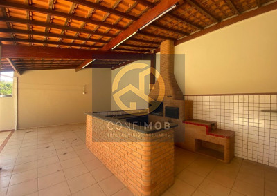 03 dormitórios sendo uma suíte, 01 sala ampla, 01 cozinha, 01 escritório, 01 varanda, 01 área com churrasqueira, garagem para 02 veículos
