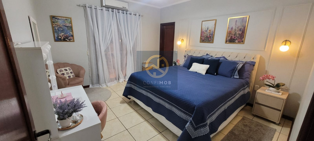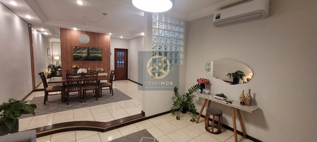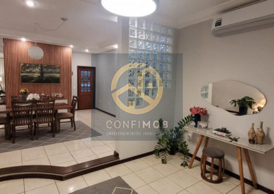 03 dormitórios amplos, sendo 01 suíte, todos com closet, planejados e varanda com tela de proteção, 01 Hall íntimo com roupeiro, 01 banheiro social, 01 Sala de estar, 01 sala de jantar, 01 sala de TV, 01 Cozinha ampla com despensa, 01 Escritório, 01 lavabo, 01 lavanderia, Garagem para 4 carros sendo 2 cobertos e 2 descobertos, Área de Lazer Completa, Área gourmet com churrasqueira e cooktop, 01 Banheiro externo e 01 cômodo nos fundos, Aquecimento solar em toda a casa, Energia fotovoltaica de 16 placas – média de 1.200 kWh/mês, Ambientes climatizados com ar-condicionado, Sistema de câmeras, cerca elétrica e alarme, Portão eletrônico e paisagismo