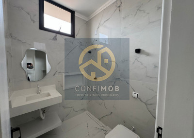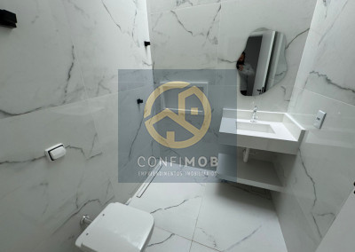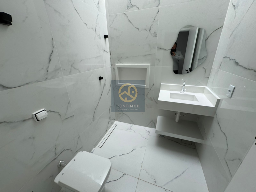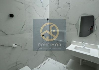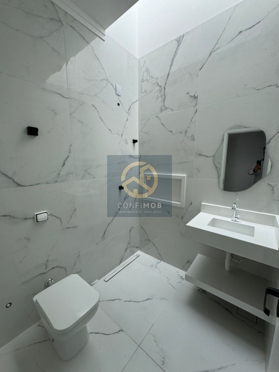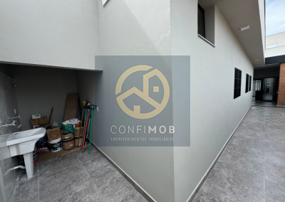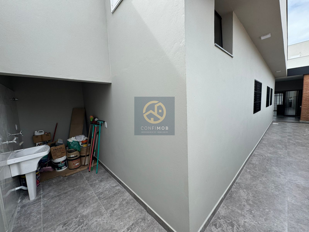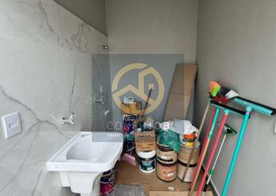 3 quartos, suite master com closet, banheiro social, lavabo externo para área gormue, lavanderia coberta no fundo da casa