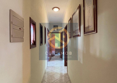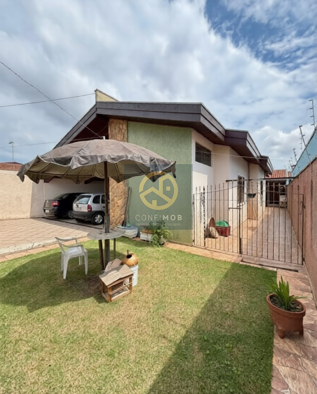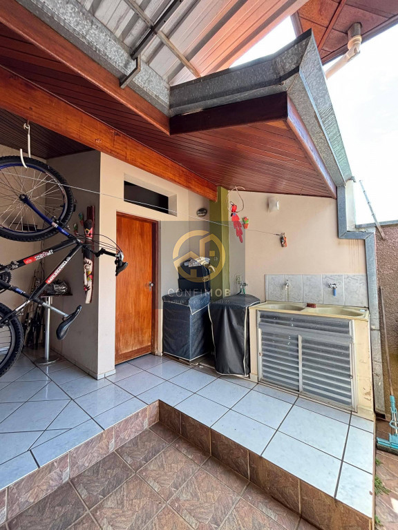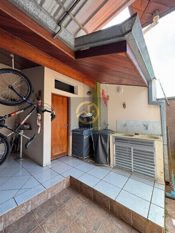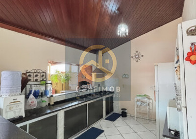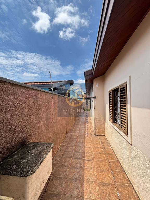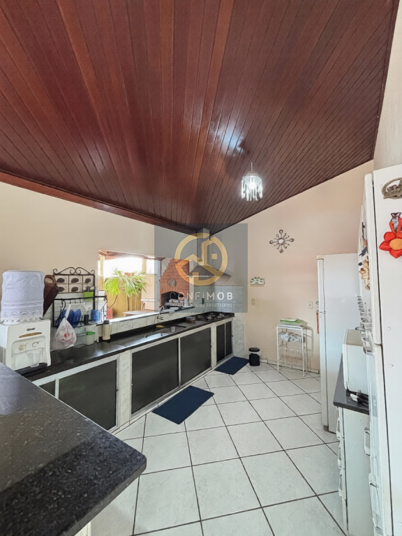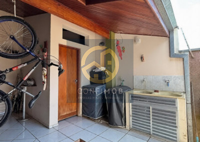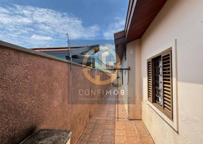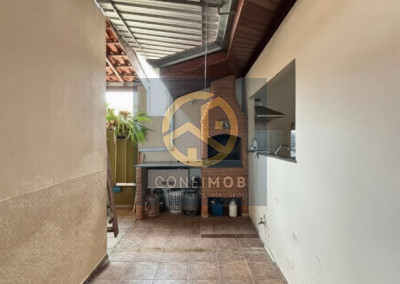 03 dormitórios sendo 03 suítes, salas de TV e jantar integrados, cozinha com balcão, banheiro social, espaço gourmet com churrasqueira, lavanderia coberta, corredor nas duas laterais, quintal com piso cerâmico e gramado, portão eletrânico basculante e cerca elétrica