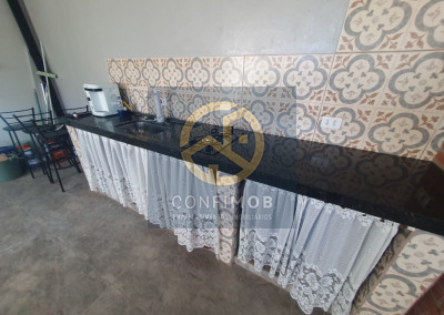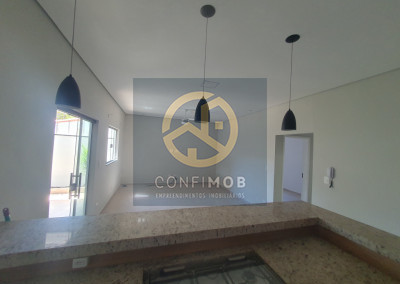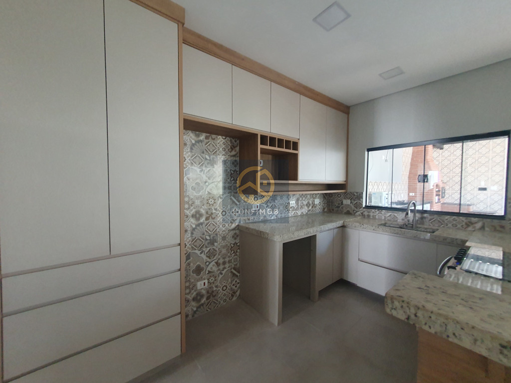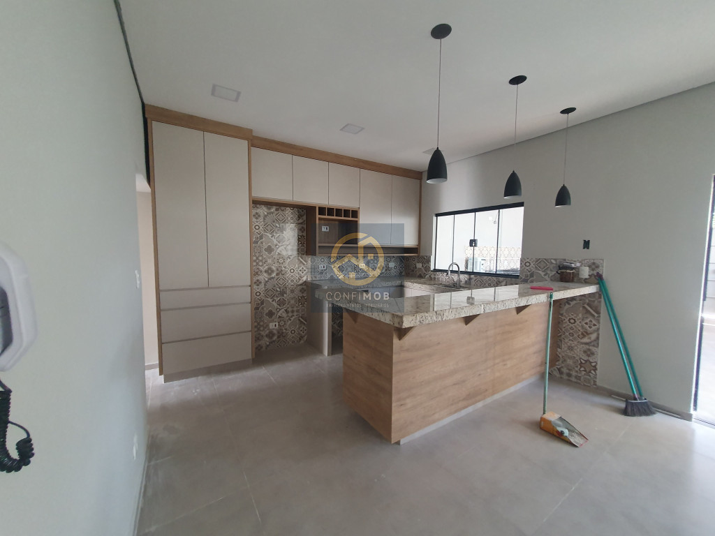 03 DORMITÓRIOS SENDO 01 SUÍTE, SALA AMPLA, COZINHA AMERICANA COM ARMÁRIOS PLANEJADOS, BANHEIRO SOCIAL COM BOX BLINDEX, ÁREA GOURMET COM PIA, FOGÃO COOKTOP, CONJUNTO COM CHURRASQUEIRA, FOGÃO DE LENHA E FORNO PARA PIZZA, PORTÃO BASCULANTE E SOCIAL AMBOS ELETRÔNICOS, INTERFONE, MURADO, LAVANDERIA COM ARMÁRIOS.