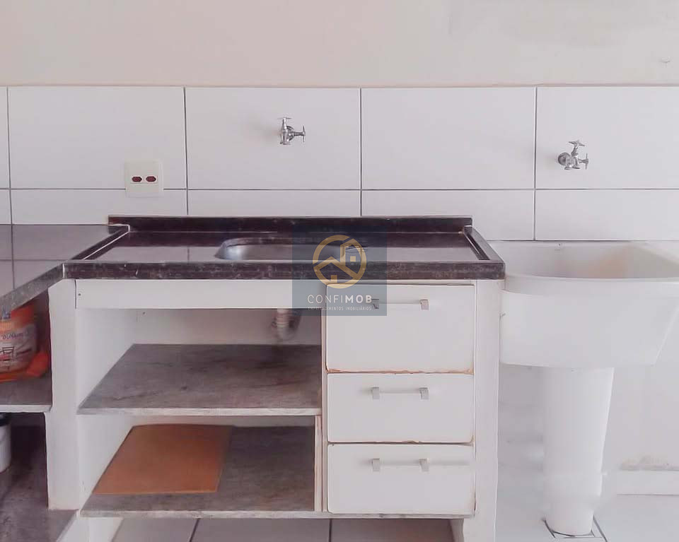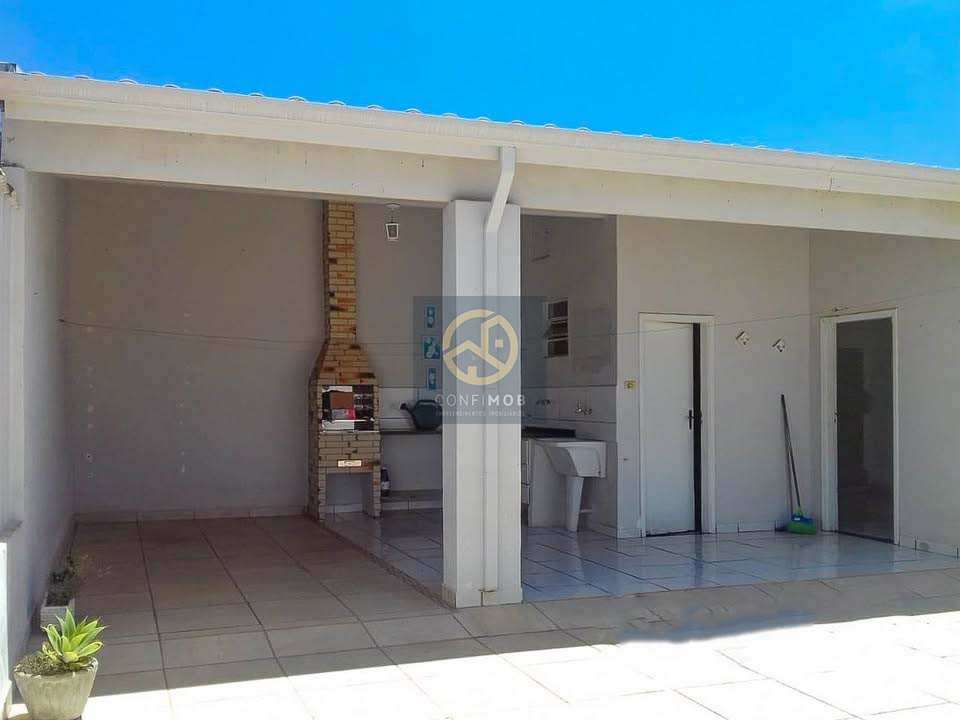 02 DORMITÓRIOS, SALA. COZINHA TODA PLANEJADA COM UM BALCÃO DE VIDRO AO CENTRO, ÁREA DE LAZER COM CHURRASQUEIRA, LAVANDERIA COM DORMITÓRIO E BANHEIRO NOS FUNDOS, GARAGEM COM PORTÃO ELETÔNICO E INTERFONE.