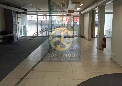 Salão Comercial de 600m² com salas e banheiros no piso superior.